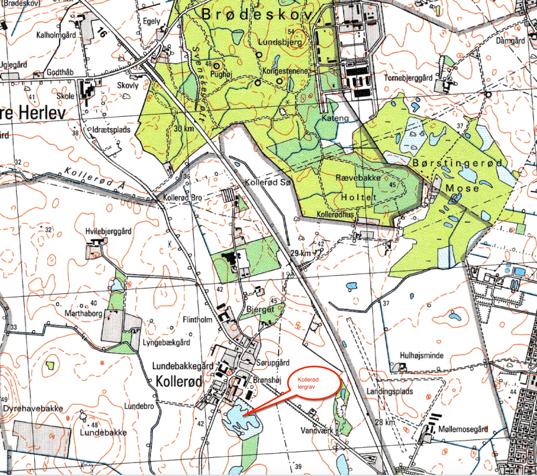 Geologisk ligger Allerød Kommune i et dødisområde. Det vil sige, at isen her lå stille længe og smeltede hen ved slutningen af sidste istid. I isen dannedes store smeltevandssøer, hvor ler kunne synke til bunds, og Kollerød ligger på sådanne leraflejringer. Når man kører til Kollerød ad Gl Kollerødvej, kan man se, at markerne ligger lavt i forhold til vejen. Det er fordi ler her er gravet af og brugt til fremstilling af tegl og mursten på områdets teglværker. Kollerød lergrav er også dannet ved lergravning, og øst for lergraven kan man se spor efter det tipvognsspor, ad hvilket leret blev fragtet væk.
